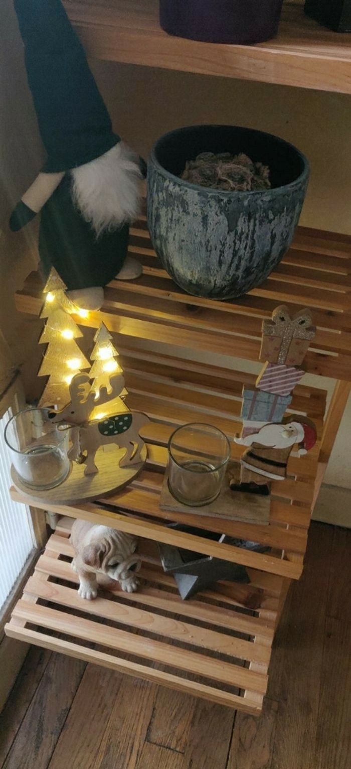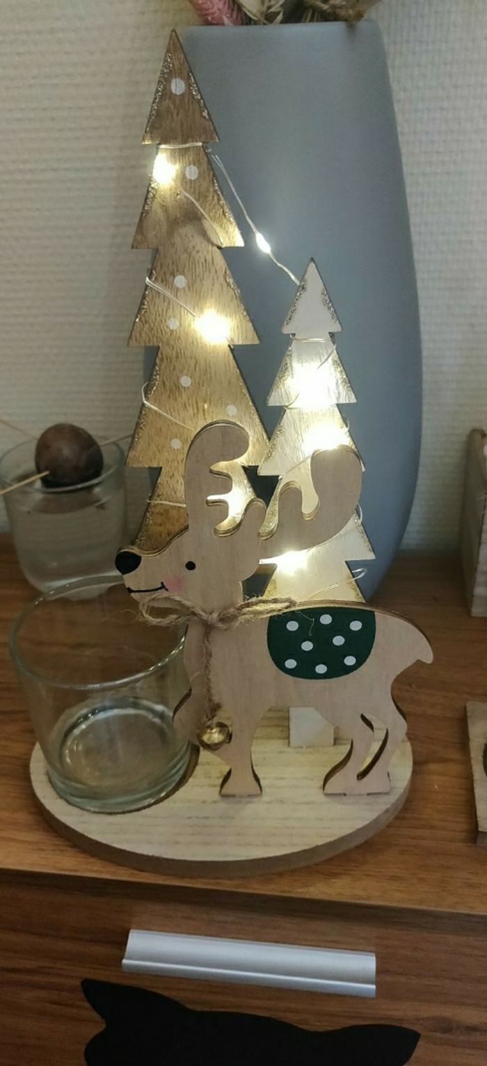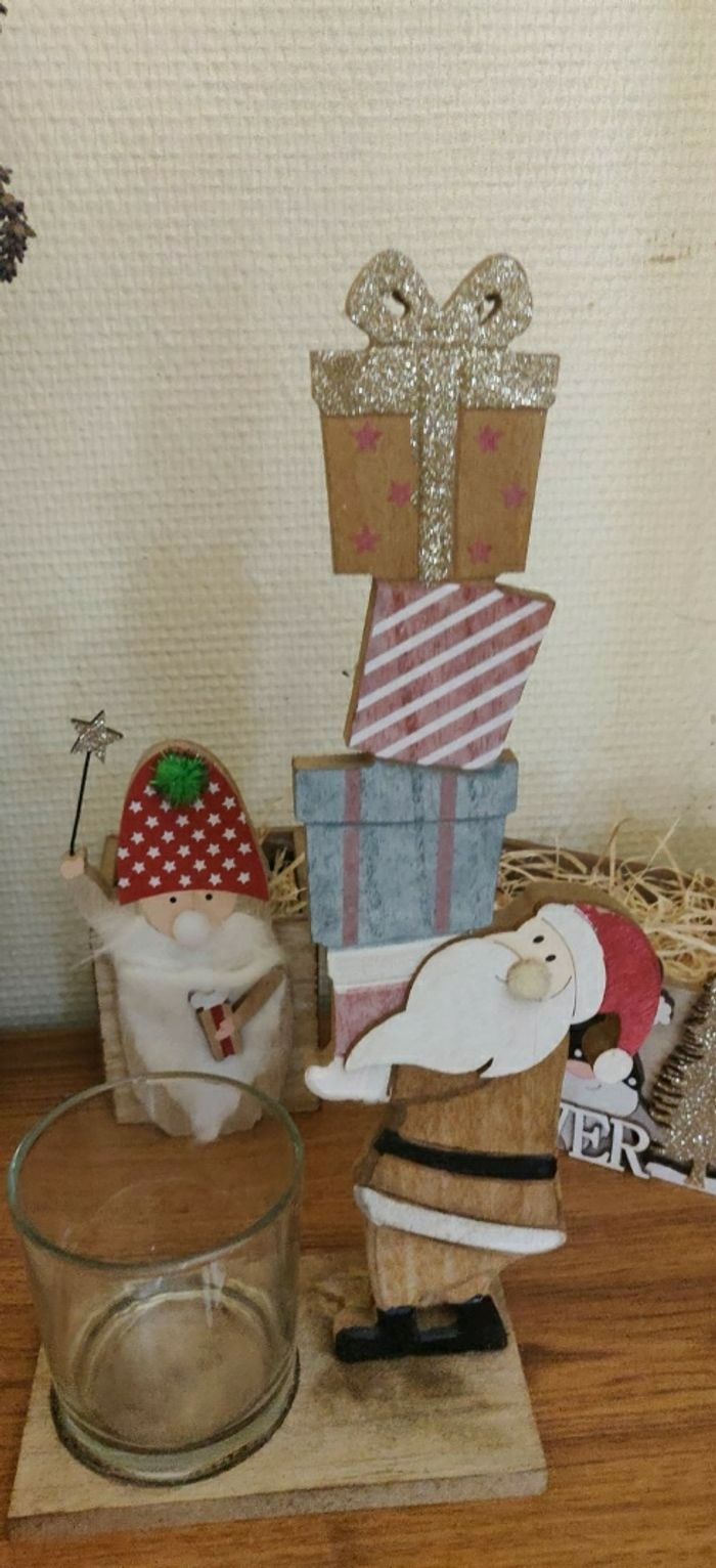 Bonjour vend déco de Noël dont un lumineux Celui avec le Père Noël le socle est un peu taché voir photos