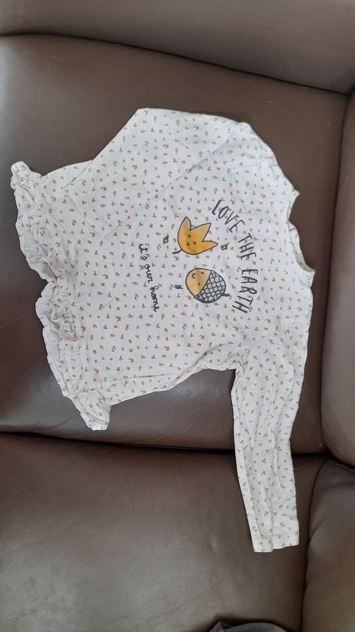 Tee shirt manches longues motifs nature, coton, petits volants au bas du tee shirt.