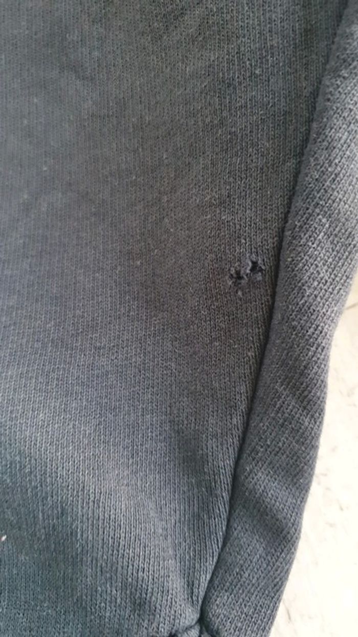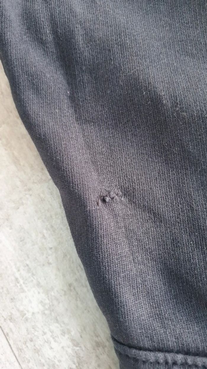 Survêtement Taille 8 ans État satisfaisant. Le haut ça va, par contre le pantalon a beaucoup de défauts. Une pièce a été mise pour boucher un trou et il y a d'autres petits trous (voir les photos). Une maman couturière pourra les recoudre (les trous sont petits) Marque Tape à l'œil