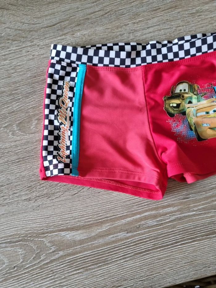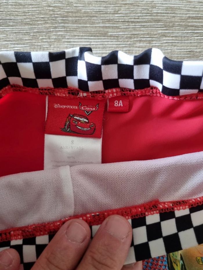 Maillot de bain Taille 8 ans Très bon état. Il y a un côté plus rouge que l'autre devant et derrière (jambe gauche plus rouge devant et plus clair derrière, jambe droite plus clair devant et plus rouge derrière) c'est d'origine, je l'ai acheté ainsi! Marque Disney Pixar
