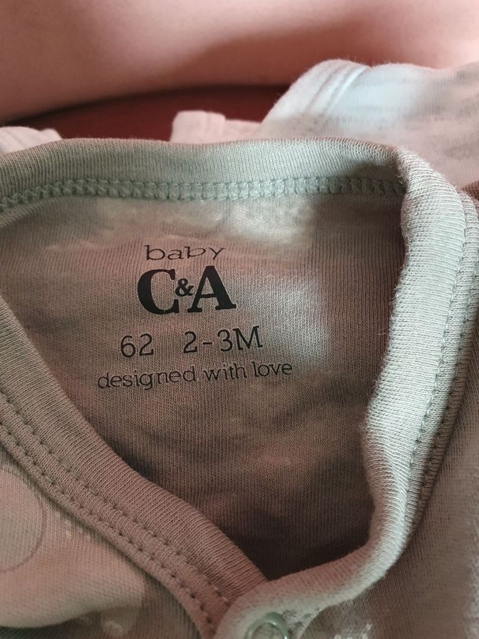 5 pyjamas de la marque C&A En très bon état. Propres, lavés, non repassés. Taille : 62cm, 2-3 mois Les cintres ne sont pas inclus dans la vente.