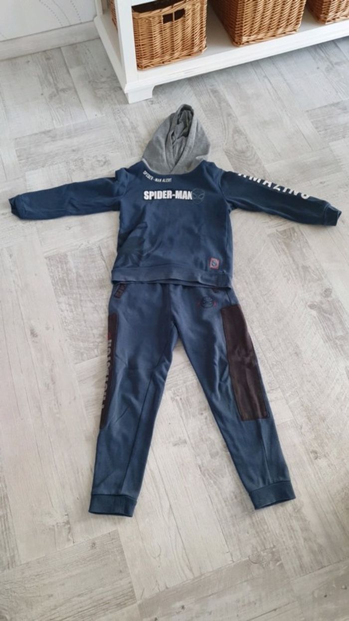 Survêtement Taille 8 ans Bon état, à pas mal été porté et un peu vert au niveau des genoux (voir les 2 avant dernières photos). Marque Marvel