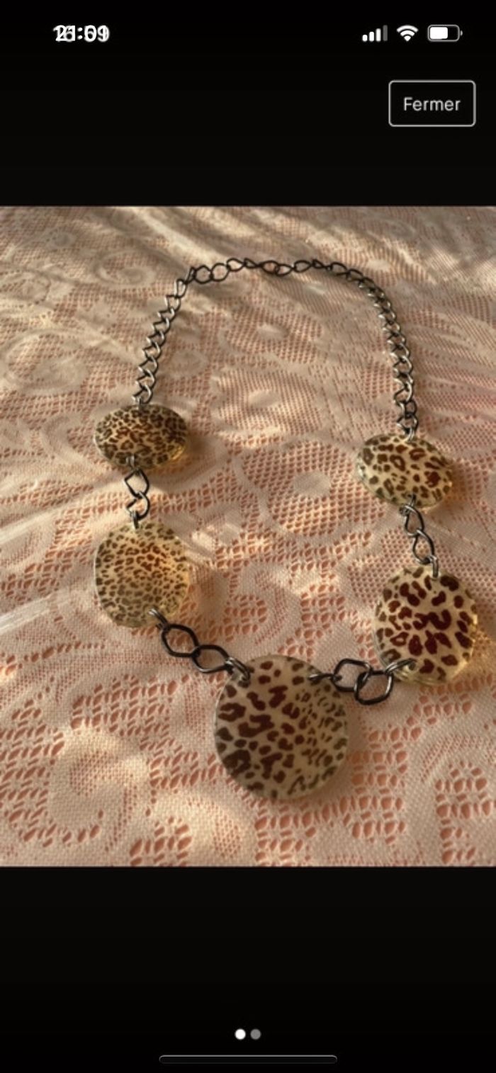 Collier neuf jamais porté à grosses mailles avec breloque léopard acheté dans un magasin spécialisé de bijoux fantaisie 22€90 céder 10€