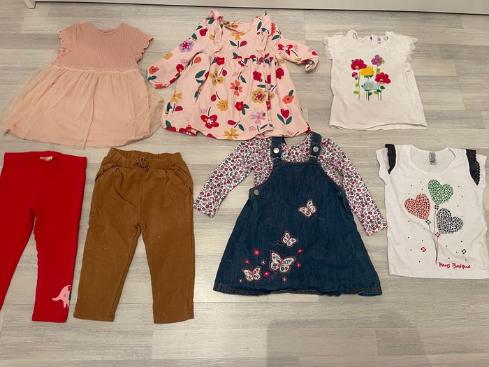 Lot vêtement hiver ❄️ : - 3 robes / - 2 Pantalon / - 2 th shirt + Lot de 3 pyjama et gigoteuse / Taille 24 mois. Différentes marques : VertBaudet - Kiabi Prix du lot 💸 : 30 euro