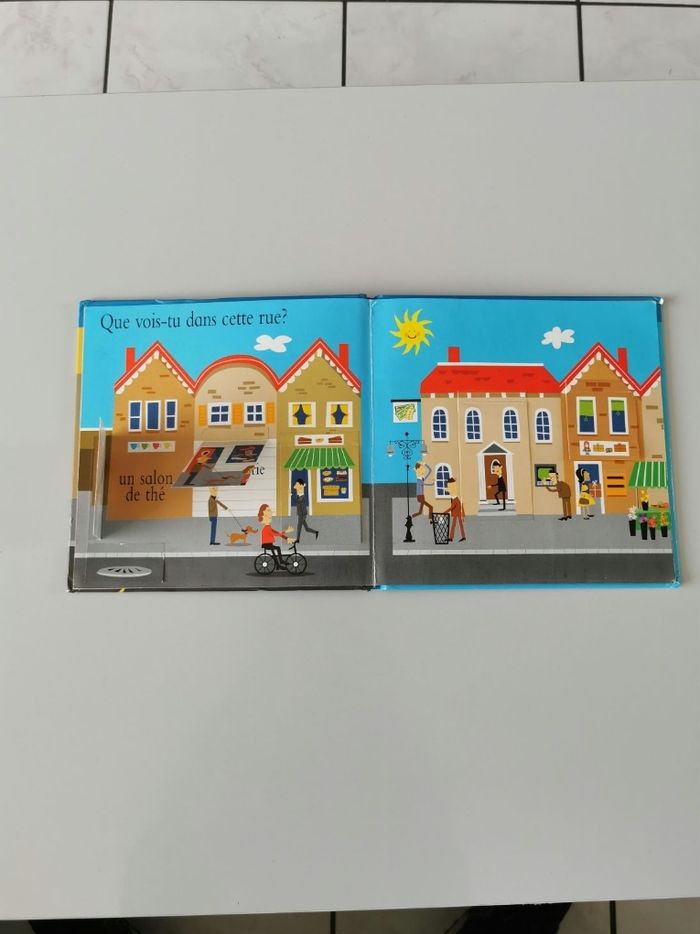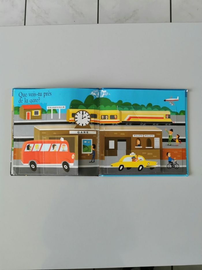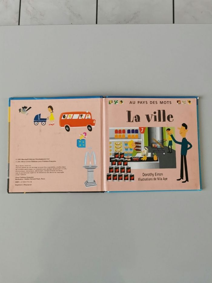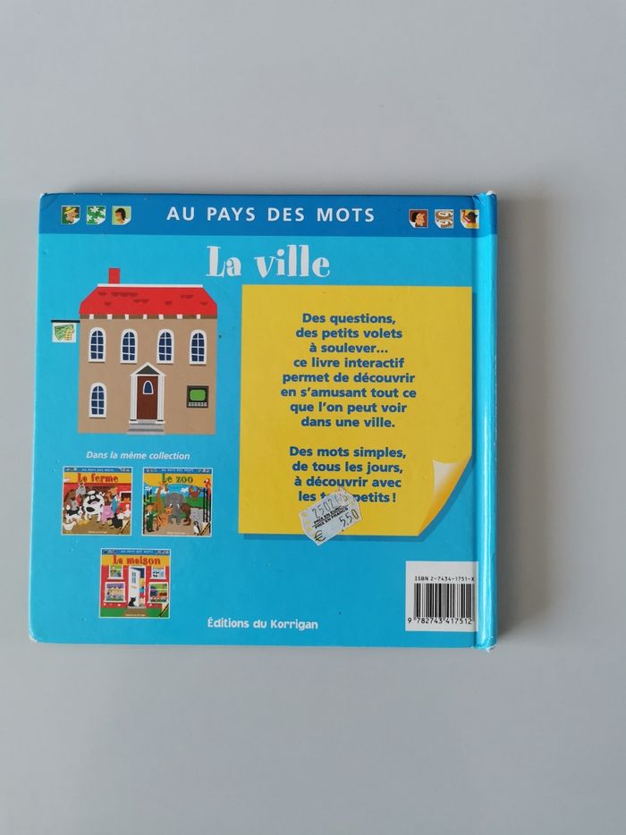 Livre au pays des mots "la ville" Des questions, des petits volets à soulever...ce livre interactif permet de découvrir en s'amusant tout ce que l'on peut voir dans une ville. Des mots simples de tous les jours, à découvrir avec les tout petits. Une page un peu abîmée (photo) Reste en très bon état.