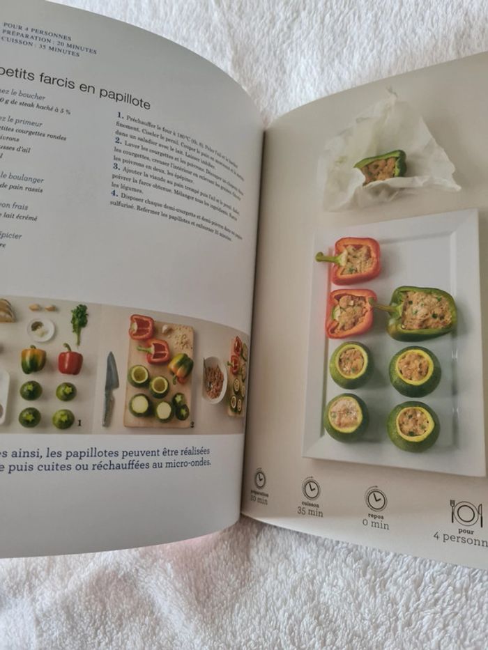 Gros livre de cuisine aux éditions Marabout 180 recettes Weight Watchers saines et gourmandes de l'apéritif au dessert + 2 semaines de menus Très bon état, juste feuilleté Valeur initiale 20.90e Pas d'envoi par la Poste merci !