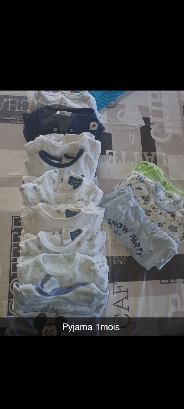 Lot de pyjamas, bodies garçon taille: 1mois 3 pyjamas léger 9 pyjamas en velours 8 bodies manche longue acheté neuf, en tres bon état Pour plus de photo en détail, ou des informations, contacter moi en mp.