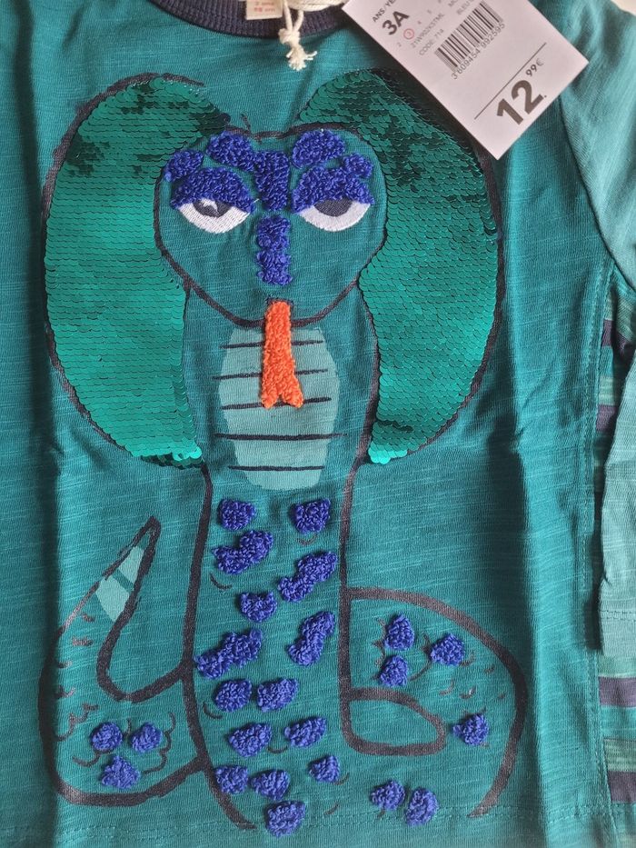 T shirt manches longues Motof serpent cobra avec sequins réversibles Taille 3 ans Neuf jamais porté