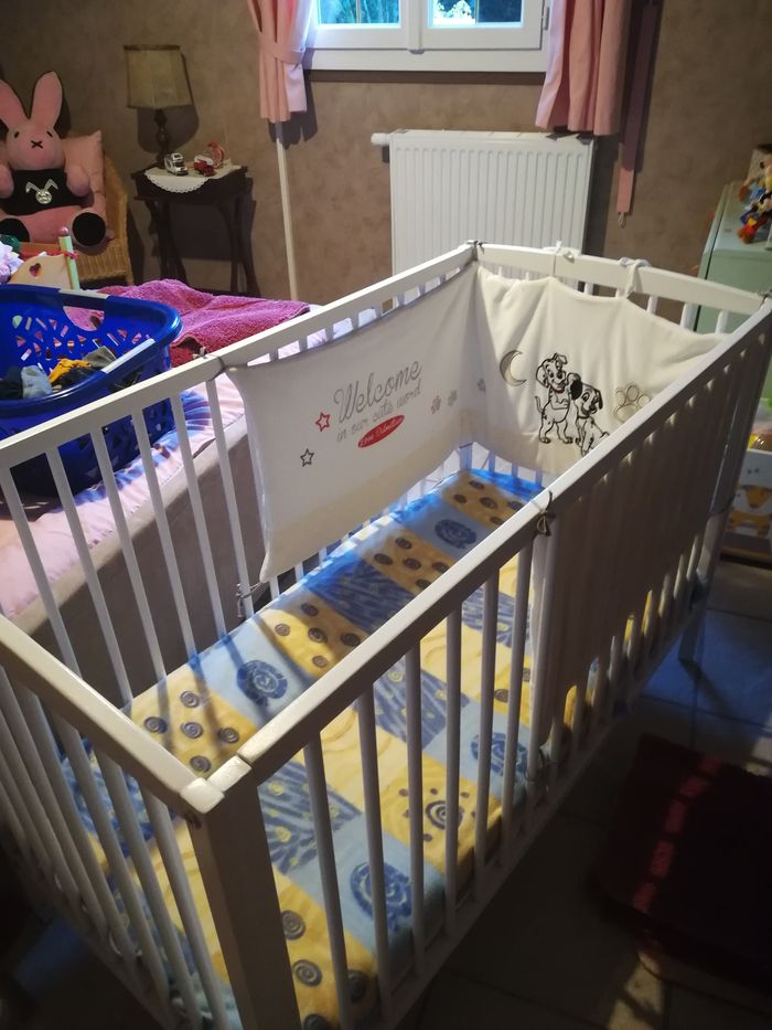 Lit Bébé avec matelas, alèse et contour de lit Possibilité de réglage en hauteur
