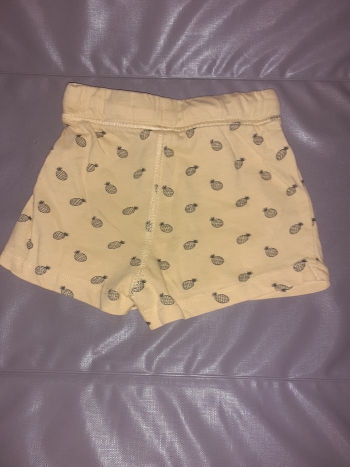 Vend jolie short mixte fin avec des ananas comme motifs. La couleur nest pas passer. Elle est nickel. Pas de trous. Pas de taches et les motifs ananas la couleur est nickel aussi pas de décoloration. Taille 9 mois réglable donc on peux commencer à le mettre avant a bebe donc je dirais la taille 6/9mois Marque kiabi Laver avec de la lessive spéciale pour bébé et sanythol spécial linge bebe Maison non-fumeur Mis sur plusieurs sites de ventes et groupes de ventes