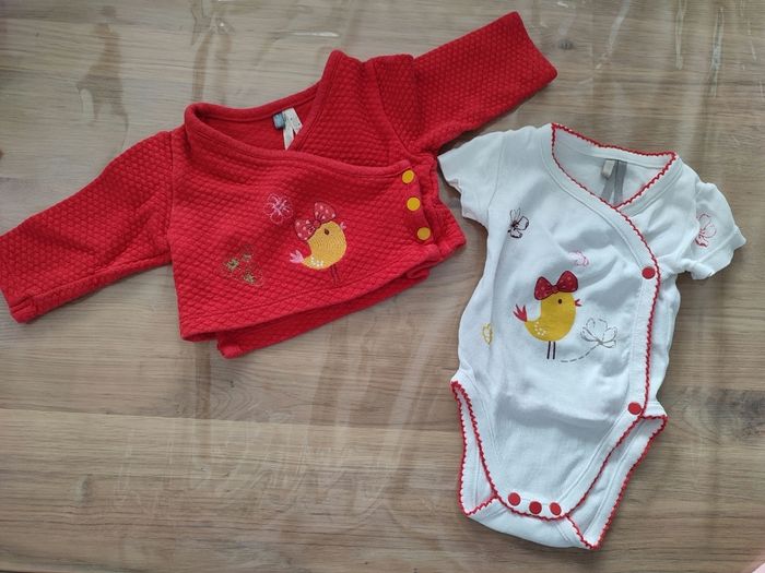 Bodie manche courte + gilet taille 1 mois de la marque Orchestra. En très bon état.