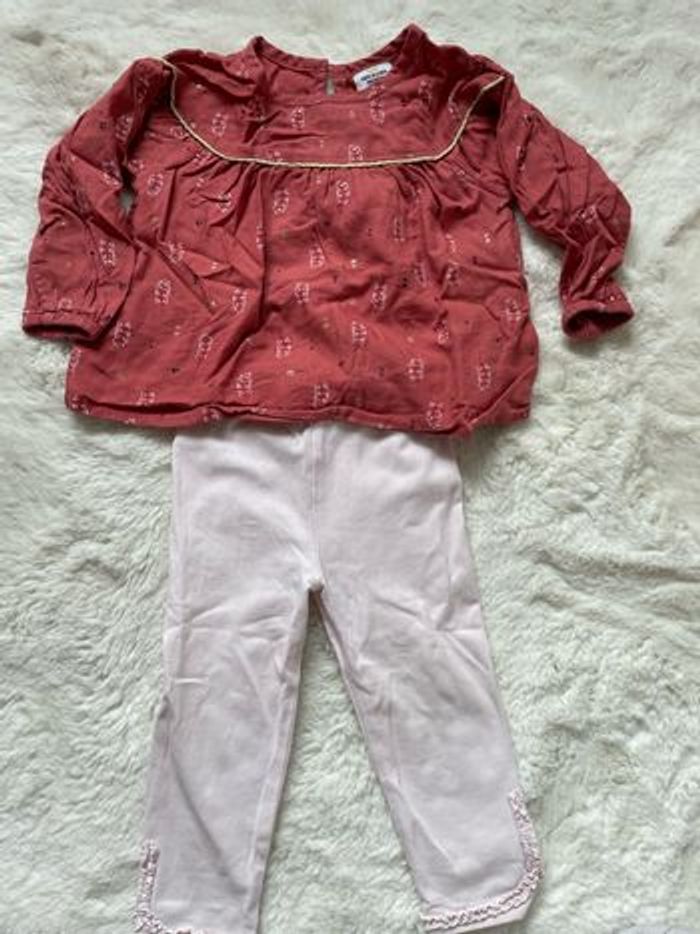 Ensemble 18 mois Tape à l’œil / lili gaufrette. En très bon état. Juste une trace d’épingle sur le legging.