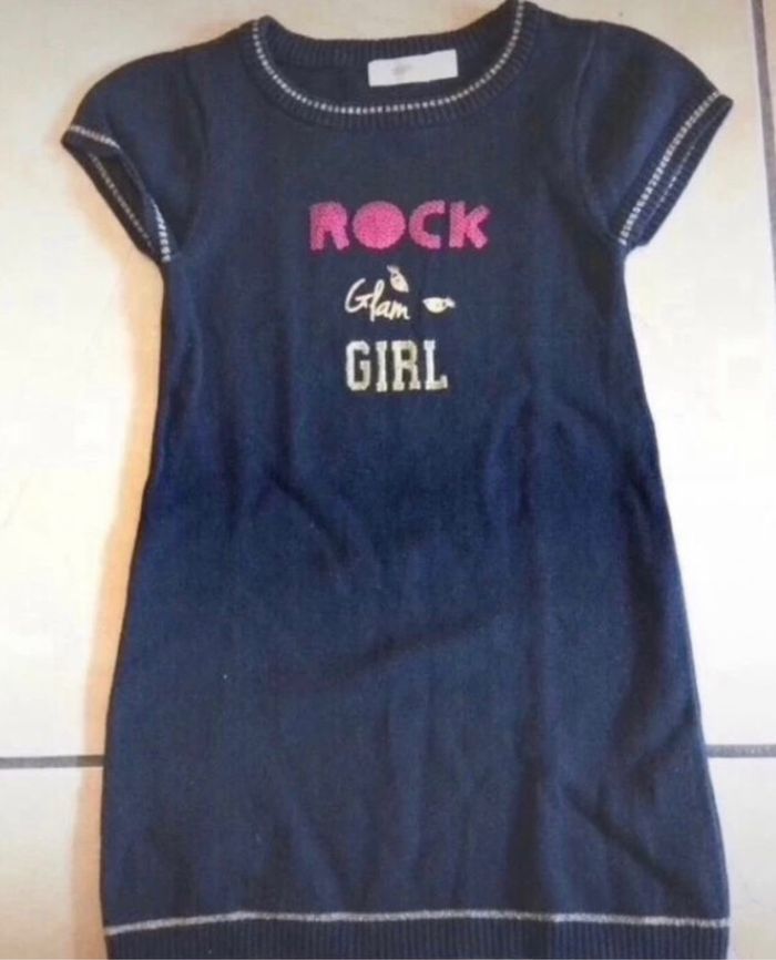 Robe, manches courtes, couleur bleu marine, taille 4 ans, marque Orchestra.
