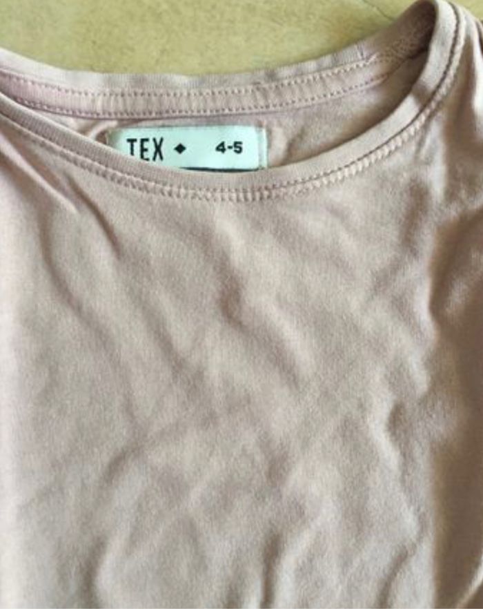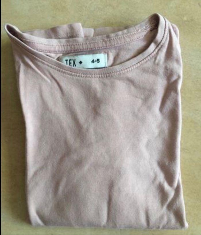 T- shirt, couleur rose, taille 4-5 ans, marque Tex. Idéal pour faire un lot.
