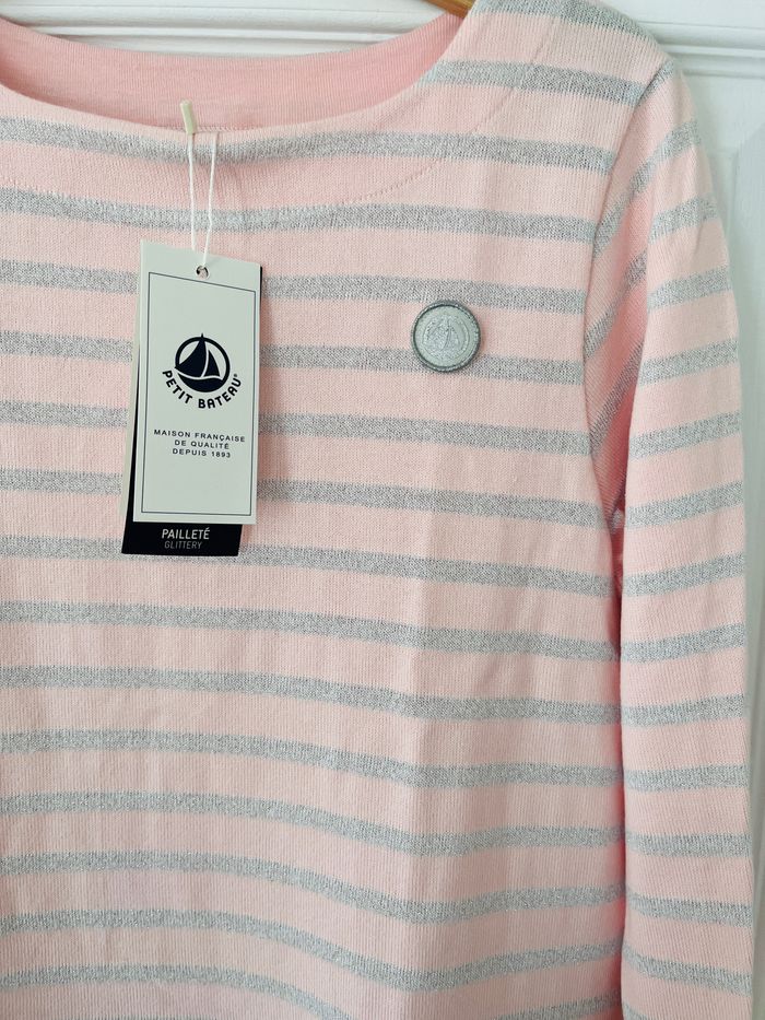 Robe Petit Bateau 10 ans rayée argenté tulle pailleté neuve étiquette