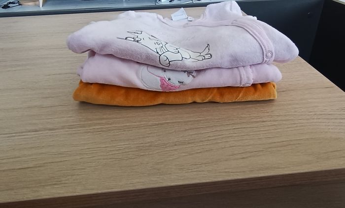 Vend Lot de 3 pyjama déjà porté mes en très bonne état 2 euro le pyjama plusieurs marque Disney et Kiabi Taille: 3 mois Possibilité de vendre séparément