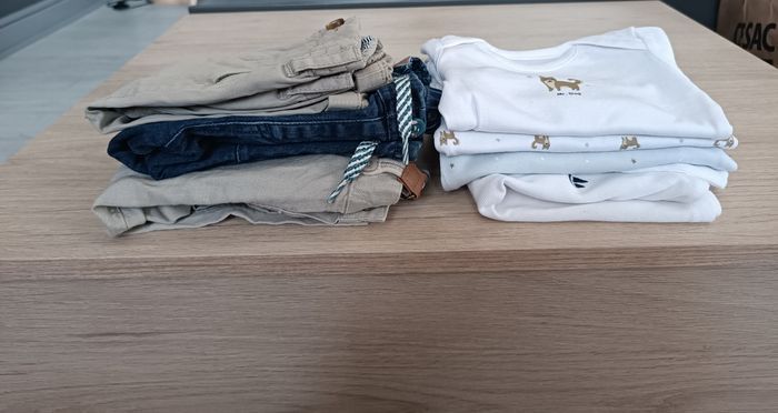 Vêtements garçon neuf plusieurs marque et plusieur tailles dans le lot orchestra , sergent majort, tommy Hilfiger ,bout chou, petit bateau. Possible de vendre séparément Prix pantalon: 5euro Prix T-shirt: 3euro Prix body : 3euro Pantalon n°1 9mois Pantalon n°2 12mois Pantalon n°3 6 9mois Les 3 body: 6 mois T-shirt: 12 mois