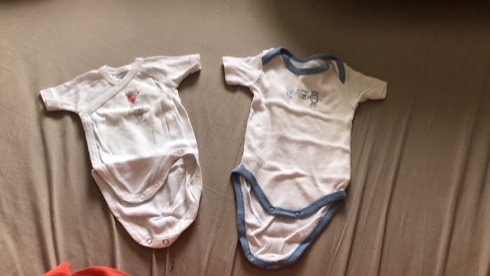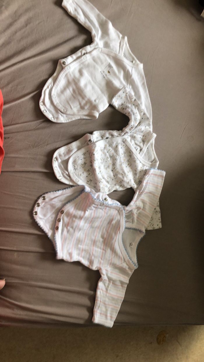 Lot de 9 bodies taille naissance. En bon état.
