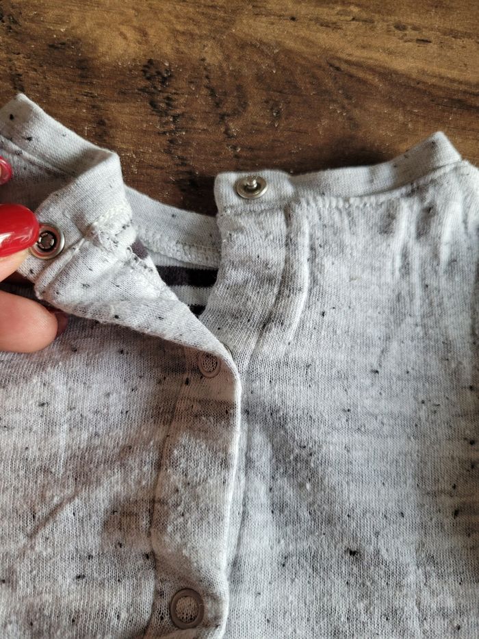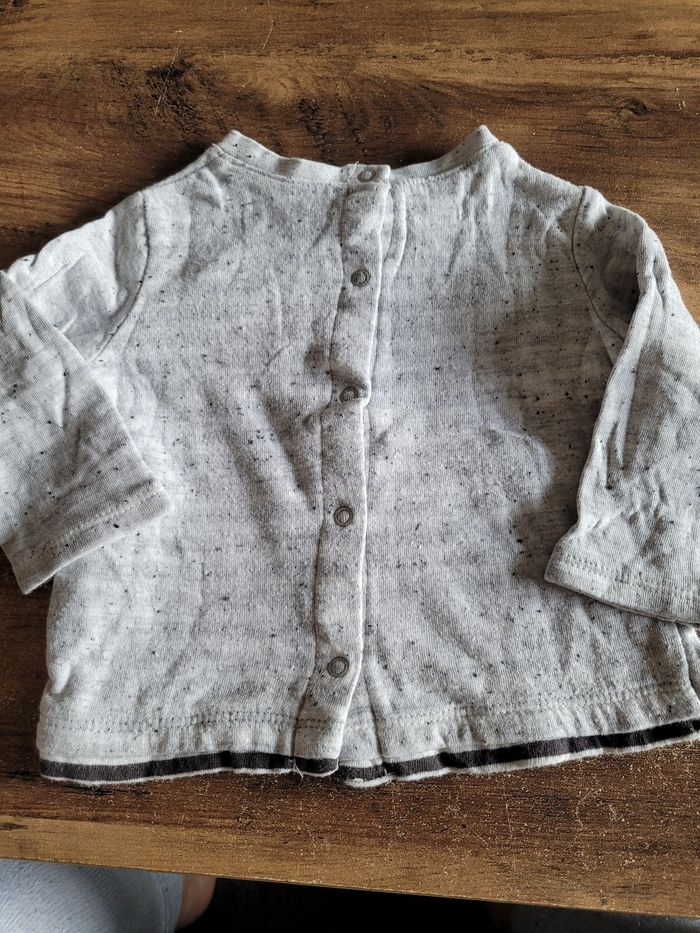 Petit T-shirt Manche longue Couleur gris clair Vrai poche devant Taille 6 mois Mi saison Attaché derrière dans le dos Matière 98% coton 1% viscose 1% polyester