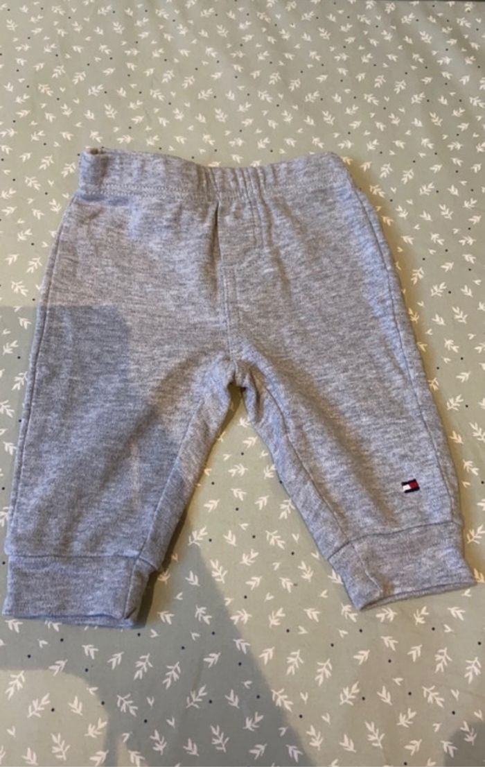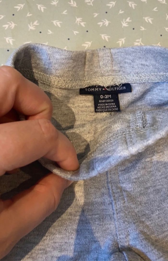 Lot de 3 pantalons Taille 3 mois Très bon état (juste une micro tache derrière sur le pantalon blanc Petit bateau, voir photo) Plusieurs marques : Petit bateau, Tommy Hilfiger et sans marque pour le pantalon bleu clair