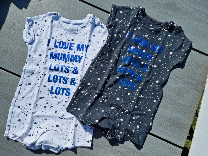 Lot de 2 rompers Comme neuf, très peu porté Taille 9 - 12 mois Maison non fumeur Tous les vêtements sont lavés, ils sont stockés au sec et à l'abri de la lumière