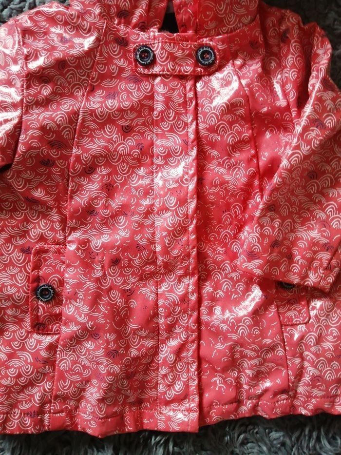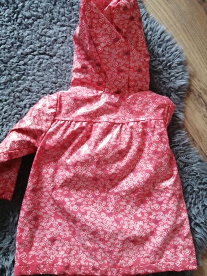 Très coquet manteau de pluie, entièrement doublé, de forme évasée avec col et capuche.