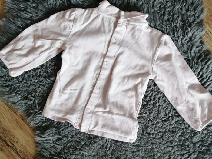Lot de 2 polo 12 M, rose pâle et blanc. Col roule et dentelle rose, col droit. Ouverture demis dis par boutons, ouverture intégrale par pressions.