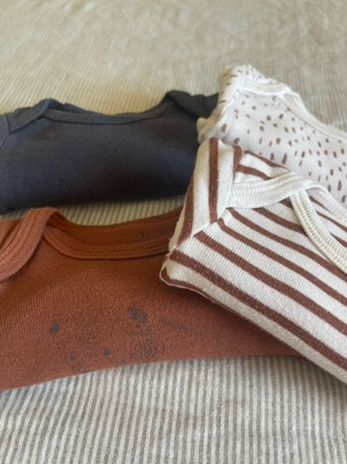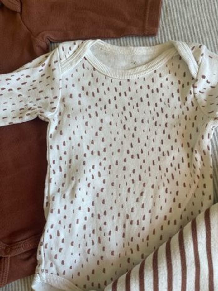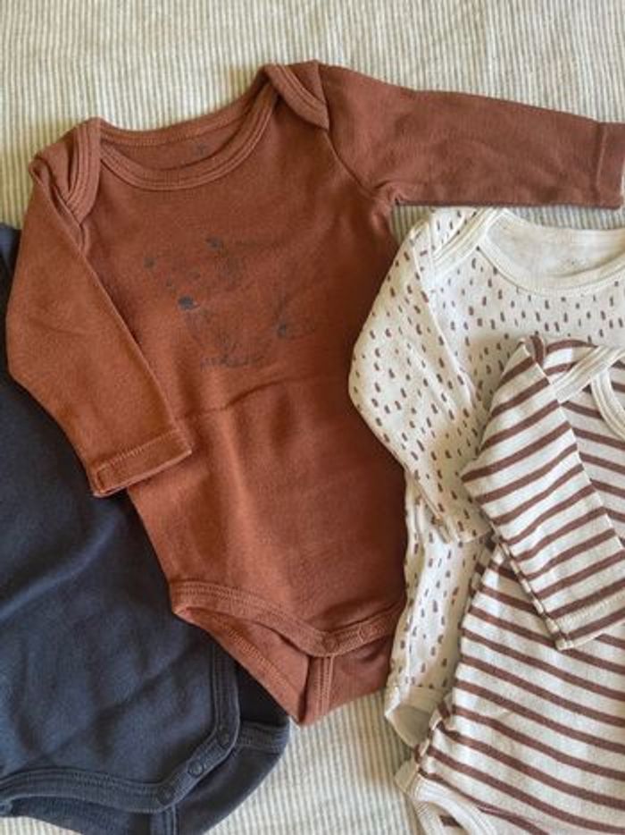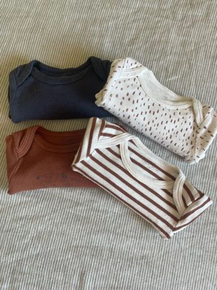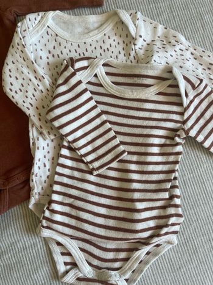 Lot de 4 bodies LA REDOUTE • 1 bleu foncé • 1 marron avec ourson • 1 rayure blanc et marron • 1 blanc et marron à pois Taille 1 mois / 54cm #laredoute #body #bodies #bodylaredoute #laredoute1mois #1mois #bodieslot1mois #babyboy #boy #baby #garçon #zara #zarakids