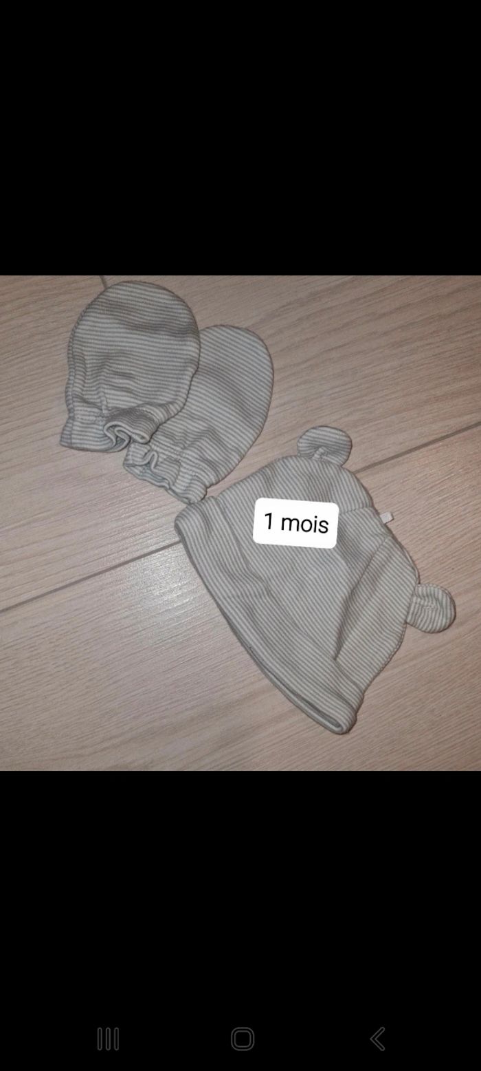 Bonnet + moufle 1 mois garçon