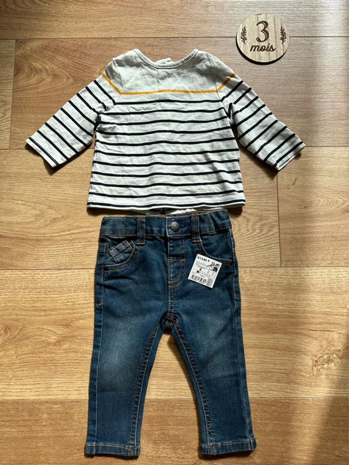 Ensemble de chez Kiabi - tee shirt manches longues 3 mois (un peu décousu en dessous du bras) - Jean en 6 mois neuf avec étiquette #kiabi #kiabibébé #kiabibébégarçon #kiabigarcon #3mois #6mois #kiabi3mois #kiabi6mois #kiabi3moisgarcon #kiabi6moisgarcon #kiabi3moisbebegarcon #kiabi6moisbebegarcon #marinière #marinierebebe #jean #jeankiabi