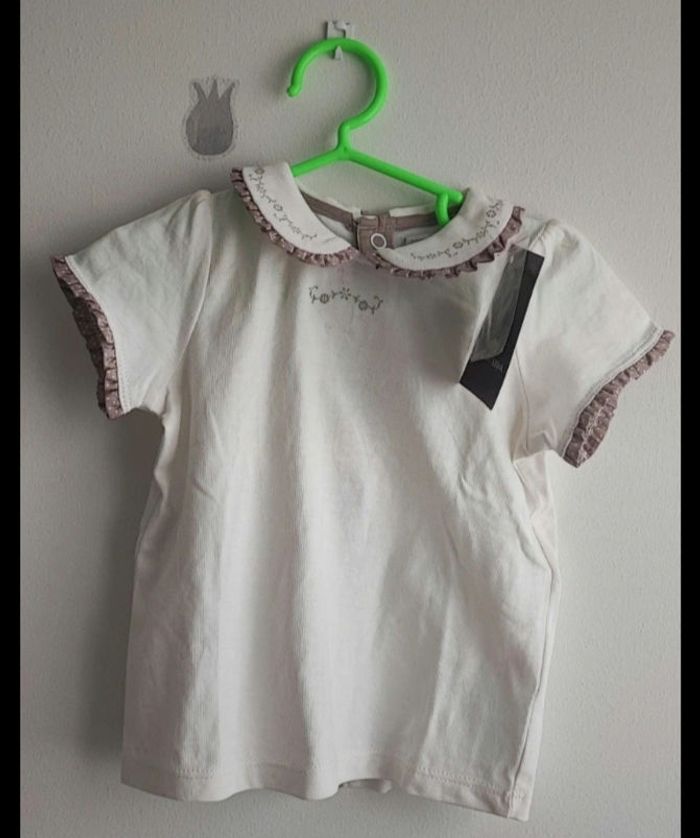 Tee-shirt sergent major, col claudine. Liseré fleuri Neuf étiquetté 12 mois