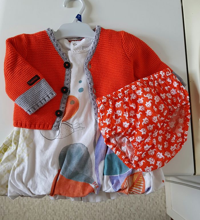 Ensemble robe + gilet + bloomer en coton La robe se ferme par pression derrière Très bon état