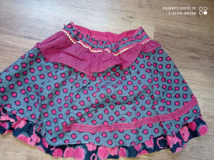 Jupe à volants à motifs colorés. Taille en partie élastique et tour de taille ajustable. Très bon état. 👉 Maison non-fumeur, sans animaux 👉 Remise en main propre secteur Lille possible. 🌺Voir mes autres annonces beaucoup de cosmétiques bio, vegan, solide en vente mais aussi livres, jouets, vêtements femme et enfants, chaussures, accessoires, bijoux... RÉDUCTION SUR LOT DES 2 ARTICLES🌺 #Emmades59_fille_6ans