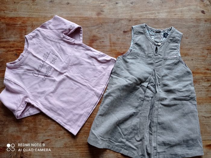 Ensemble comprenant une robe coloris taupe tout compte fait et un t-shirt coton vieux rose. Taille 12 mois. Très bon état. maison non fumeur sans animaux remise en mains propres secteur Lille possible Voir mes autres annonces beaucoup de cosmétiques bio, vegan, solide en vente mais aussi livres, jouets, vêtements femme et enfants, chaussures, accessoires, bijoux... RÉDUCTION SUR LOT DES 2 ARTICLES