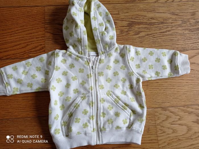 Petite veste été ou mi-saison zippée avec capuche, coloris blanc imprimé trèfles. maison non fumeur sans animaux remise en mains propres secteur Lille possible Voir mes autres annonces beaucoup de cosmétiques bio, vegan, solide en vente mais aussi livres, jouets, vêtements femme et enfants, chaussures, accessoires, bijoux... RÉDUCTION SUR LOT DES 2 ARTICLES