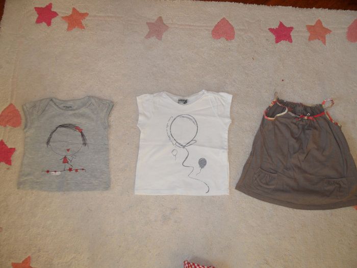 très bon état (même le blanc !) Les deux gris marque vertbaudet (le motif petite fille taille petit plutôt 18 mois) le blanc : tape à l'oeil 2 € l'unité ou 5 € le lot
