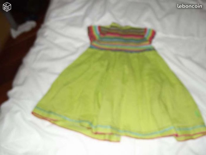 Robe vert anis, fermeture sur le devant par boutons colorés, catimini, taille 2 ans (23-24 mois, 86 cm) parfait état maison non fumeur, sans animaux