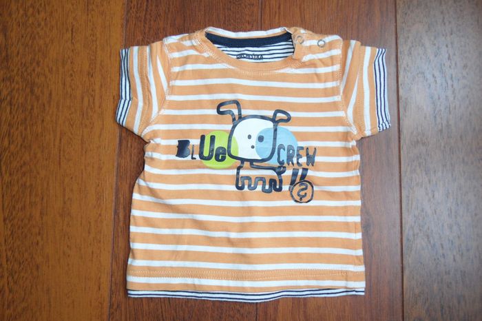 t-shirt fantaisie coton, manches courtes, marque orchestra, taille 6 mois (67-68 cm) très bon état maison non fumeur, sans animaux remise en mains propres secteur lille (chr)