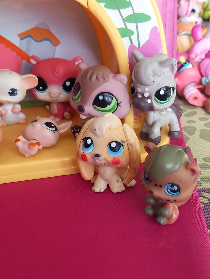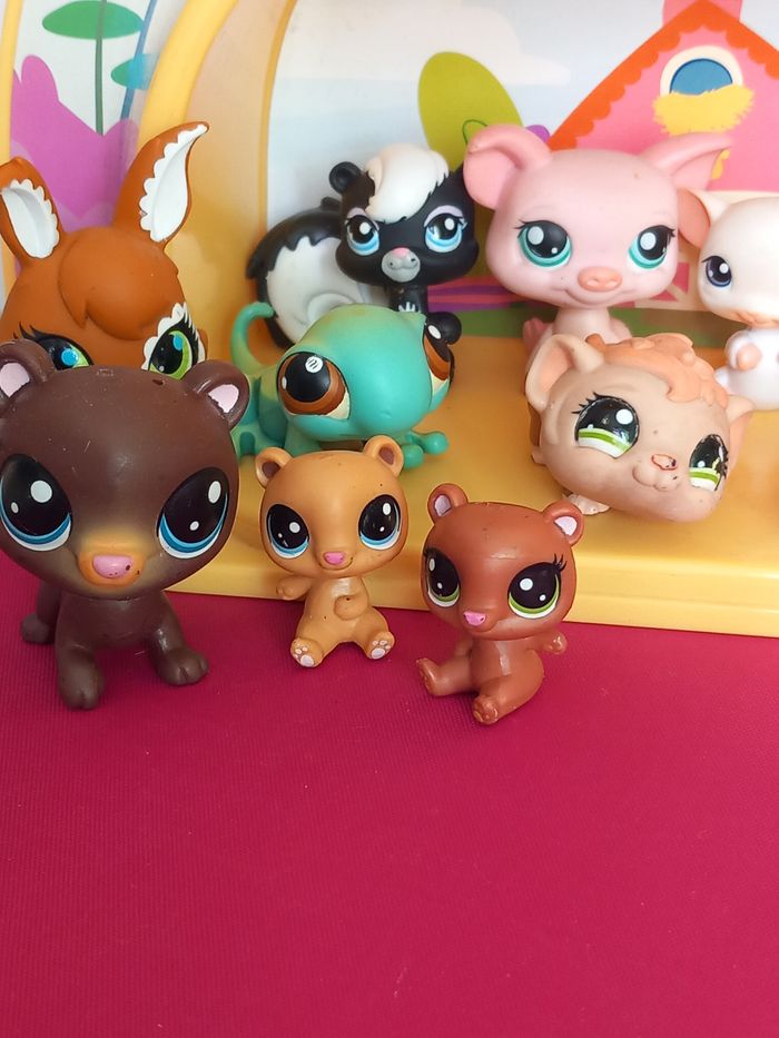 Bonjour je vends ce lot de pet shop il y a : -Une place d'une ferme où la lumière bleue s'allume quand on appuie sur le logo -16 pet shop -des accessoires (des gros, comme des petits) 30€ le lot, prix négociable dans la limite du raisonnable. Peut contenir, des traces, des paillettes