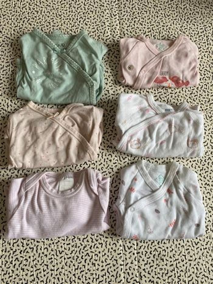 6 bodies manche longue Différente marque : TAO, Tex, H&M… Taille 1 mois