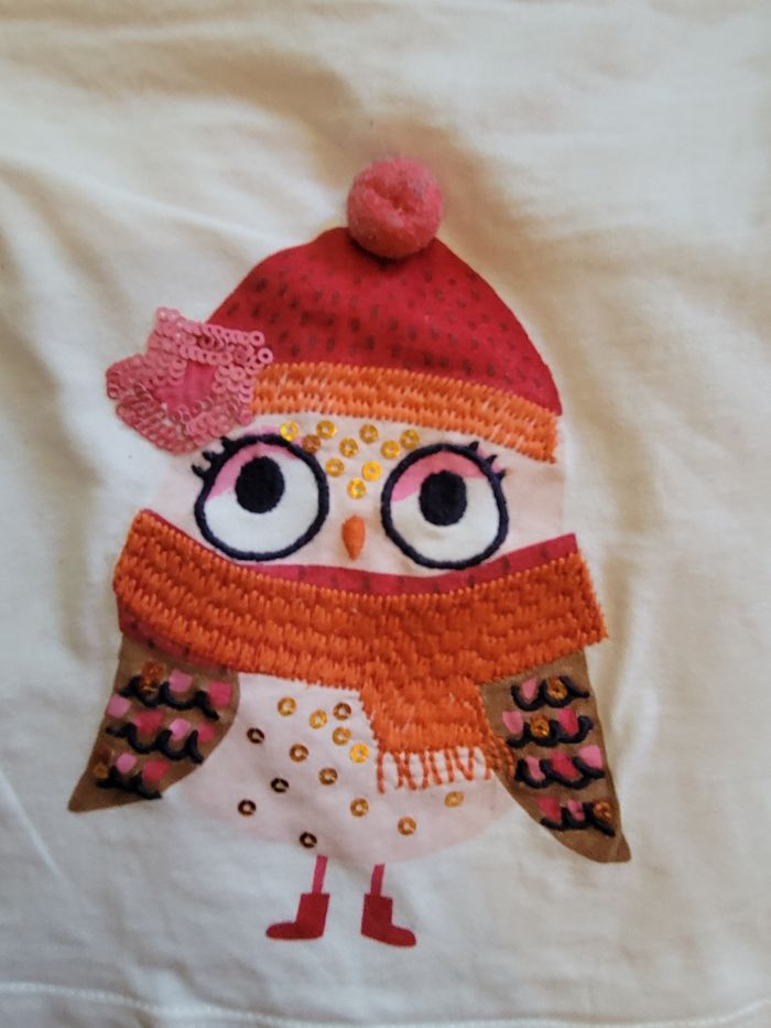 Tee shirt dpam ,avec paillette et pompom. Le blanc est moins eclatant