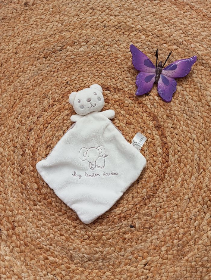 Nicotoy Simba Kiabi Doudou ours Marron et blanc Broderies éléphant My tender doudou #douceur_nicotoysimbakiabi C12