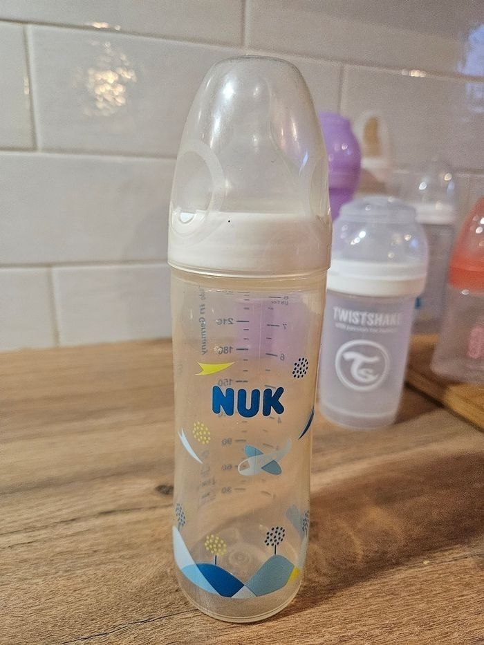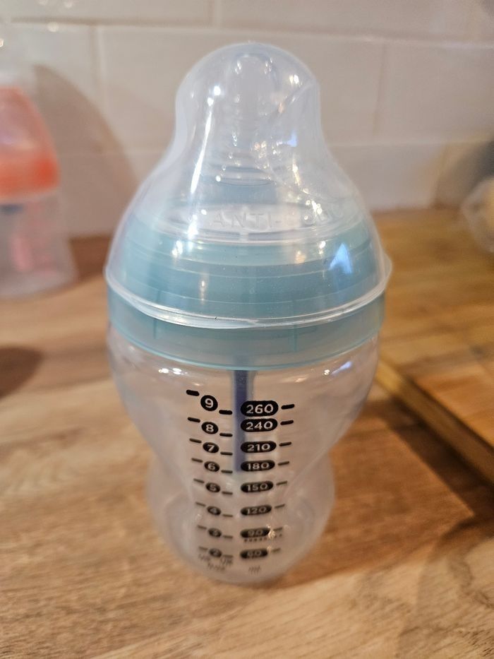 Lot de 10 biberons certains pas utilisés (twistshake), d'autres un peu plus mais peu. Mon bebe a préféré une autre marque. -2 twistshake avec le petit contenant pour le lait en poudre -2 tigex -2 tommee tippee -2 dodie -1 mam -1 nuk Principalement des tétines debit 1 et 2.