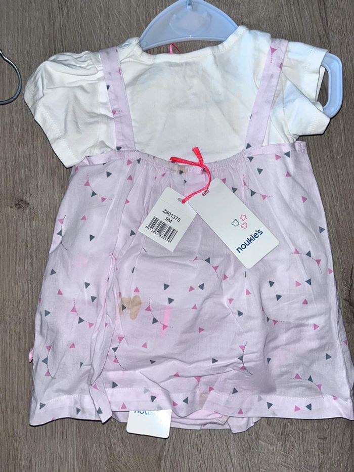 Ensemble noukies Neuf Présente une tache ( qui partira au lavage) Je l’ai prise à une brocante et elle s’est taché Achete a la boutique noukies 43€ l’ensemble 3pieces