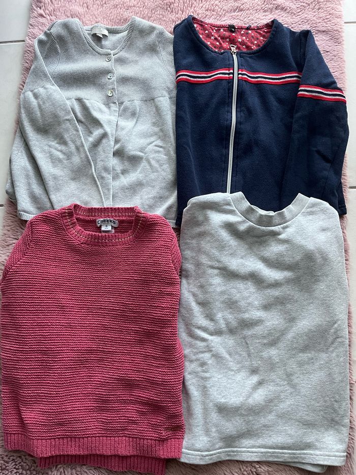 Bonjour vends 2 pulls et 2 gilets en très bon état. Taille 8 ans Marques différentes