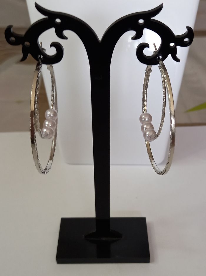 boucles d'oreilles double anneaux creoles argenté perle ! NEUF ! - photo numéro 4