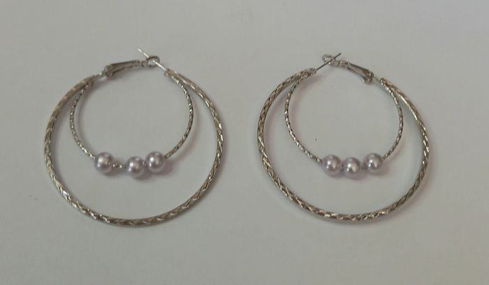 boucles d'oreilles double anneaux creoles argenté perle ! NEUF ! - photo numéro 2