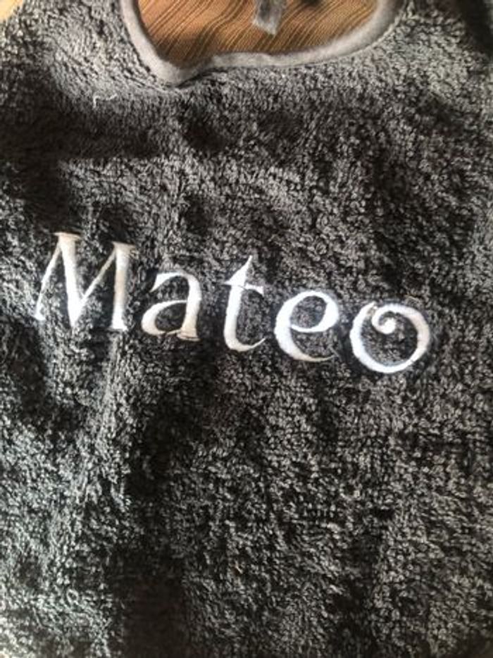 Bavoir Mateo neuf sans étiquette brodé en bleu ciel matière éponge
