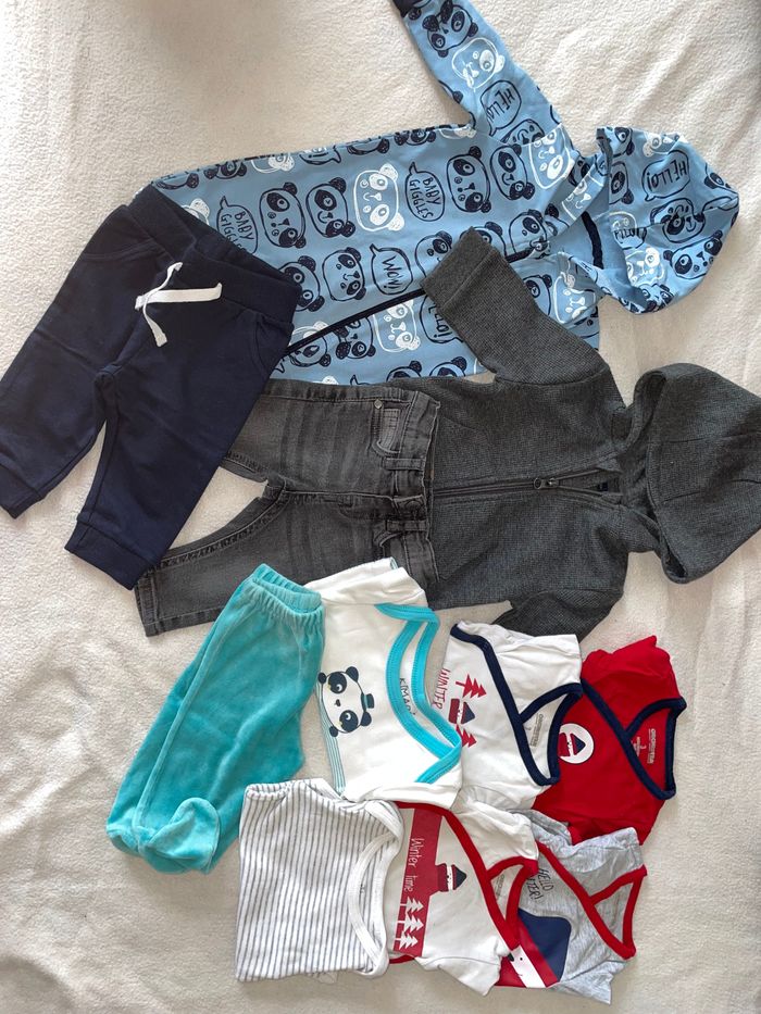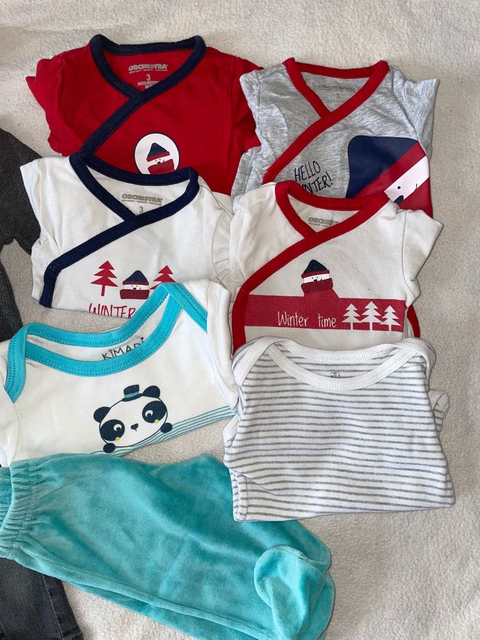 Très beau lots de vêtement garçon 3 mois comporte : - Une combinaison mise une fois - Un jeans - Un jogging - Un pyjamas 2 pièces - 5 Bodies - Une veste a zippe