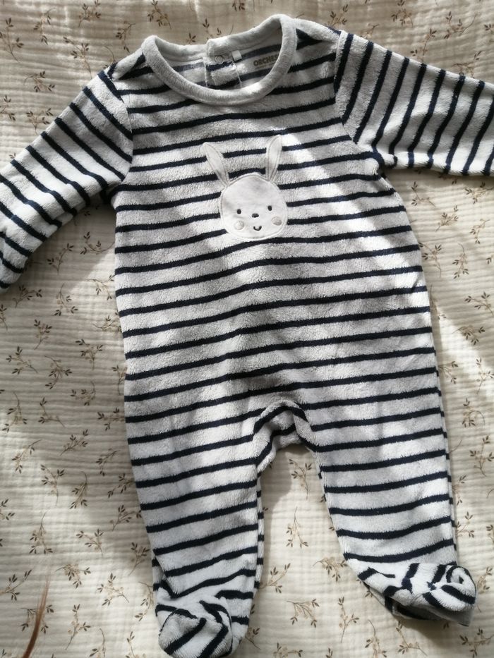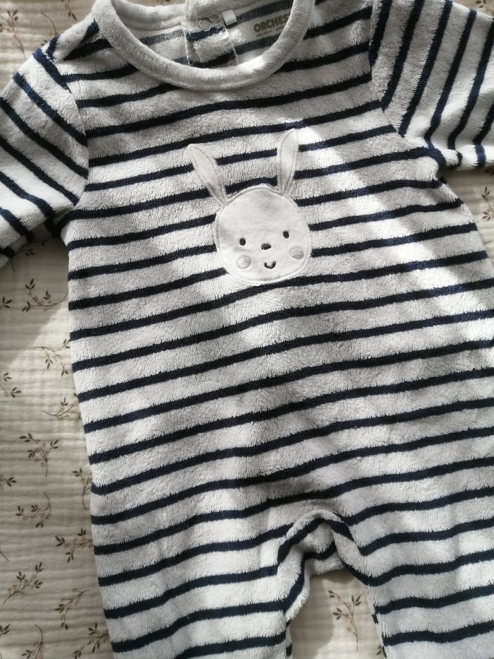 Pyjamas velours Très bonne état Taille 3 mois 56cm 62 cm Couleur blanc et noir Marque orchestra
